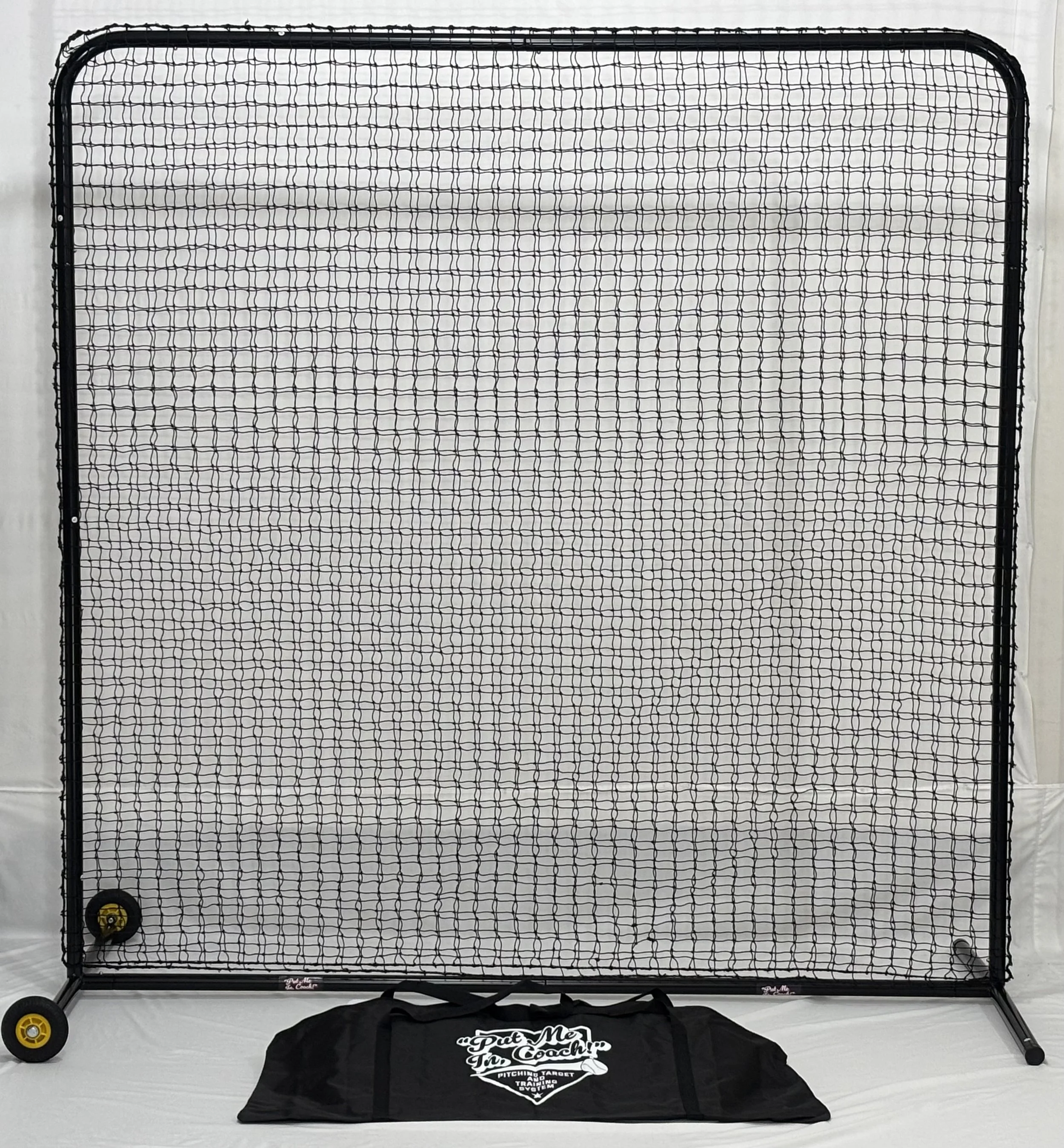 Create a perfect backyard pitching station by accessorizing our pitching target with the Put Me In, Pitching Net for the performance boost of getting quality training reps daily. Whether it is used for solo pitching practice, pitcher/hitter duels, bullpen training, or for a protective screen, this versatile portable backstop can be used for a multitude of training exercises for pitchers and hitters.